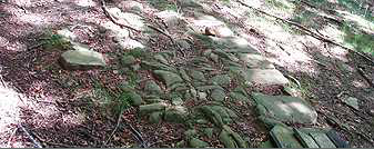 Es la calzada Berrenoa, construida en la Edad Media. Desde el alto de Berrenoa hasta aquí, bajaba a Atxurrene y a partir de ahí seguía al río Agauntza. Debido a los conflictos que había entre el reino de Navarra y el de Castilla en la Edad Media, esta zona limítrofe de Berrenoa se conocía con el nombre de “la frontera de los malechores”. Por esta calzada discurría uno de los ramales del Camino de Santiago y, por lo tanto, era un camino concurrido, donde uno se podía cruzar con peregrinos, arrieros, contrabandistas, ladrones… ¡Incluso con brujas! Al menos eso es lo que se dice en la zona.